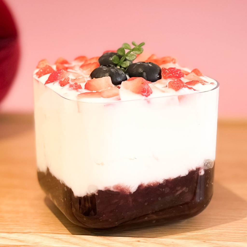 Sữa chua nếp cẩm dâu việt quất là sự kết hợp hài hòa giữa sữa chua nhà làm mịn mát, chua dịu tự nhiên, nếp cẩm nấu mềm thơm bùi và dâu việt quất tươi căng mọng. Vị chua ngọt thanh của trái cây tươi giúp món ăn trở nên tươi mát, dễ ăn, cân bằng cùng độ béo nhẹ của sữa chua và vị bùi của nếp cẩm.